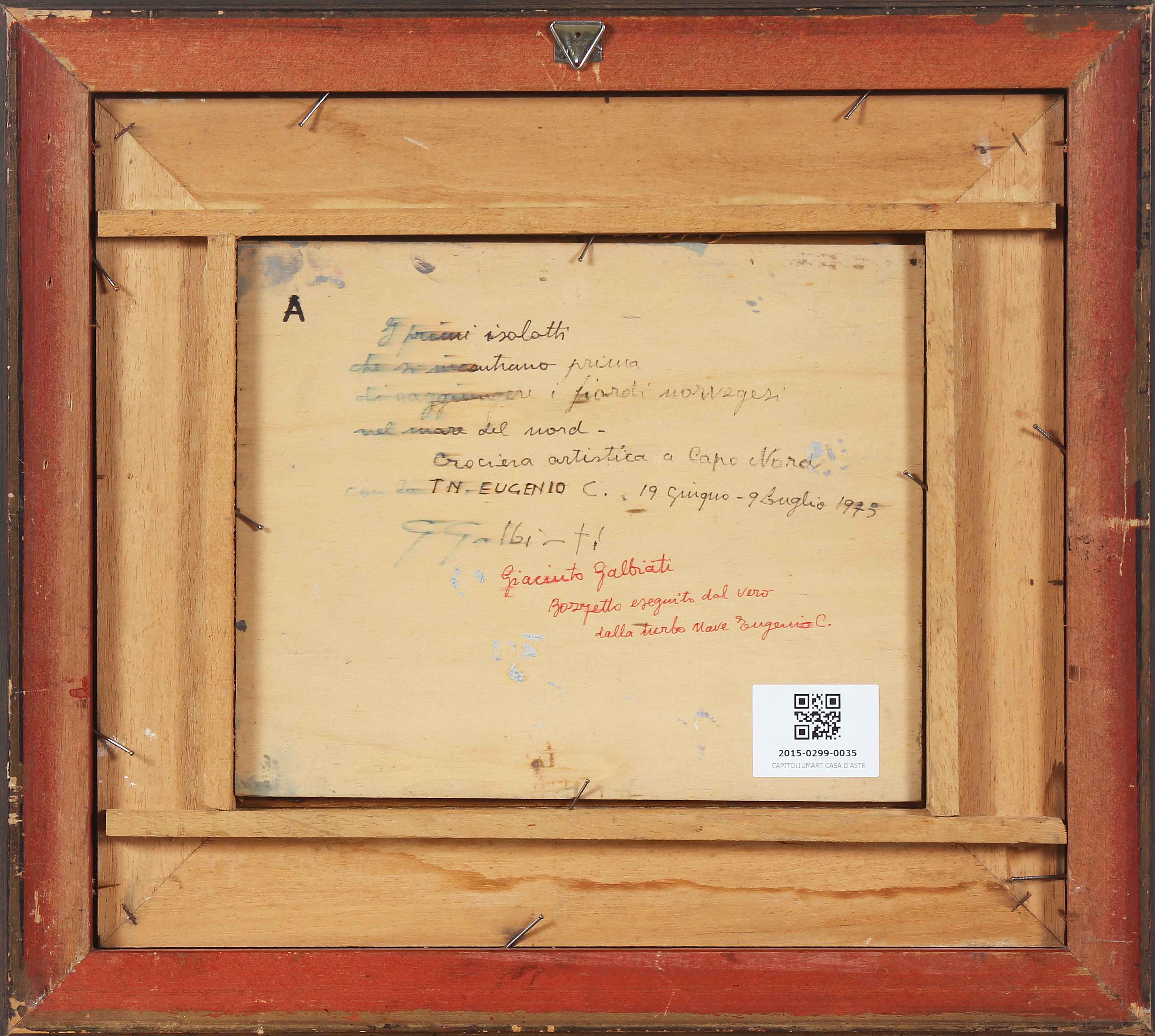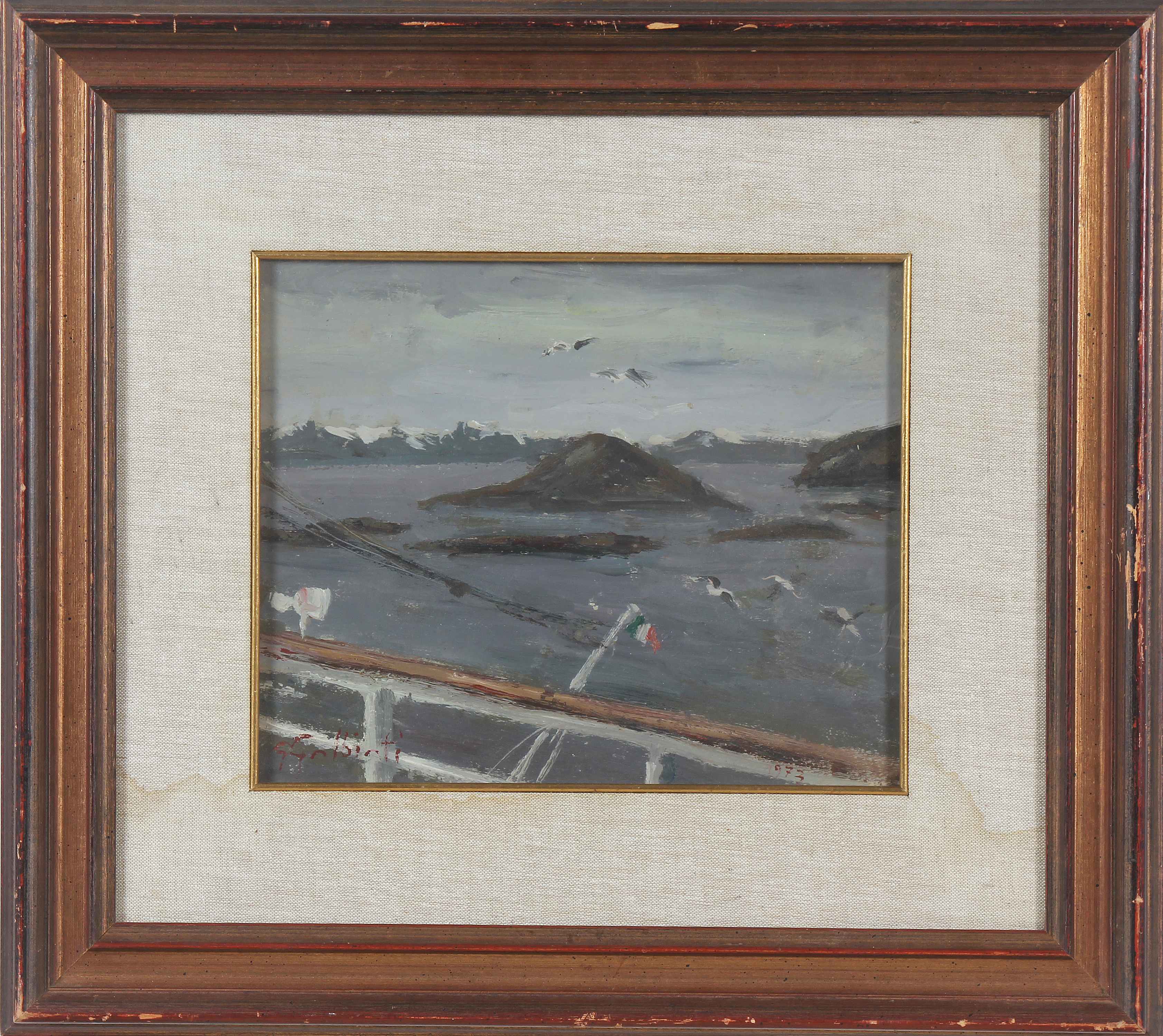 GALBIATI GIACINTO (1908 - 1992) Crociera d'artista a Capo Nord. 1973. Olio su tavola. Cm 29,00 x 24,00. Firma e data in basso. Al retro titolo, firma e anno.
