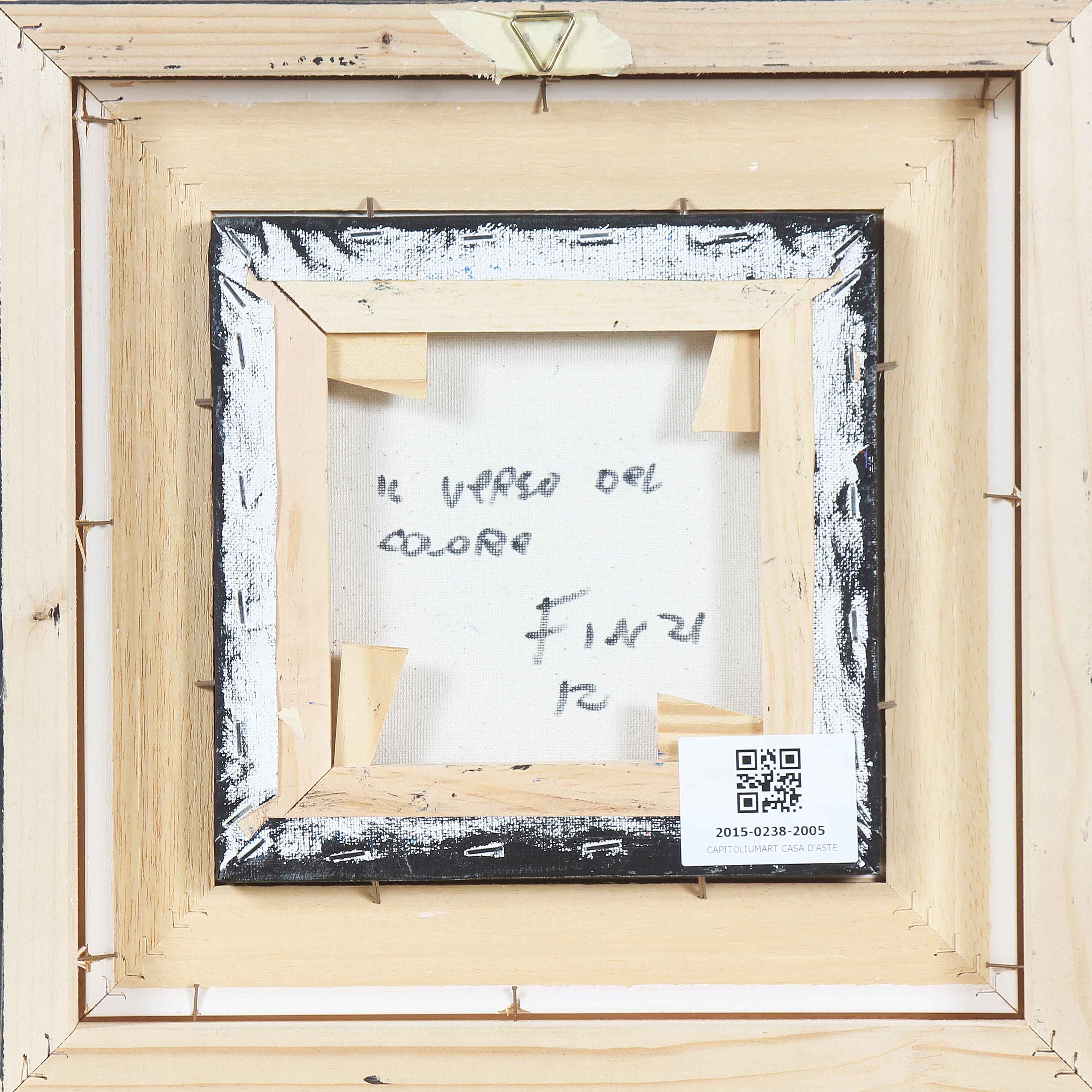 FINZI ENNIO (n. 1931) Il verso del colore. 2012. Acrilico su tela. Cm 20,00 x 20,00. Al retro titolo, firma e anno. Autentica dell'artista su fotografia. Cornice presente