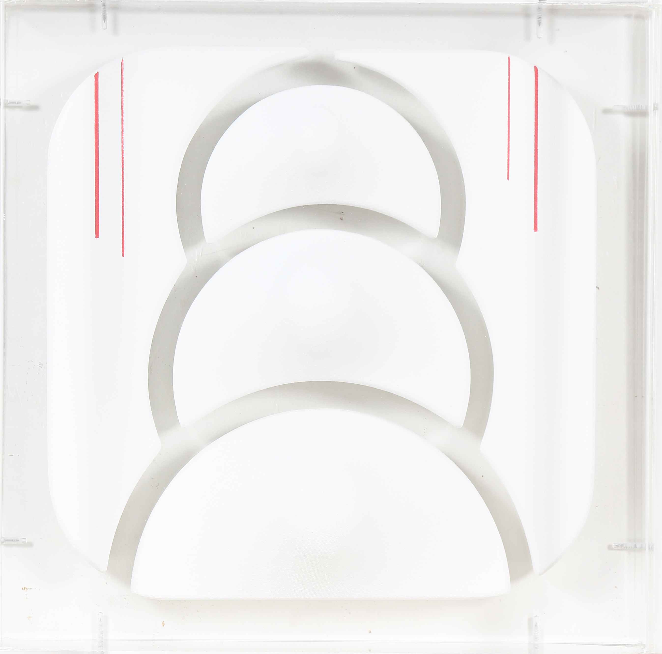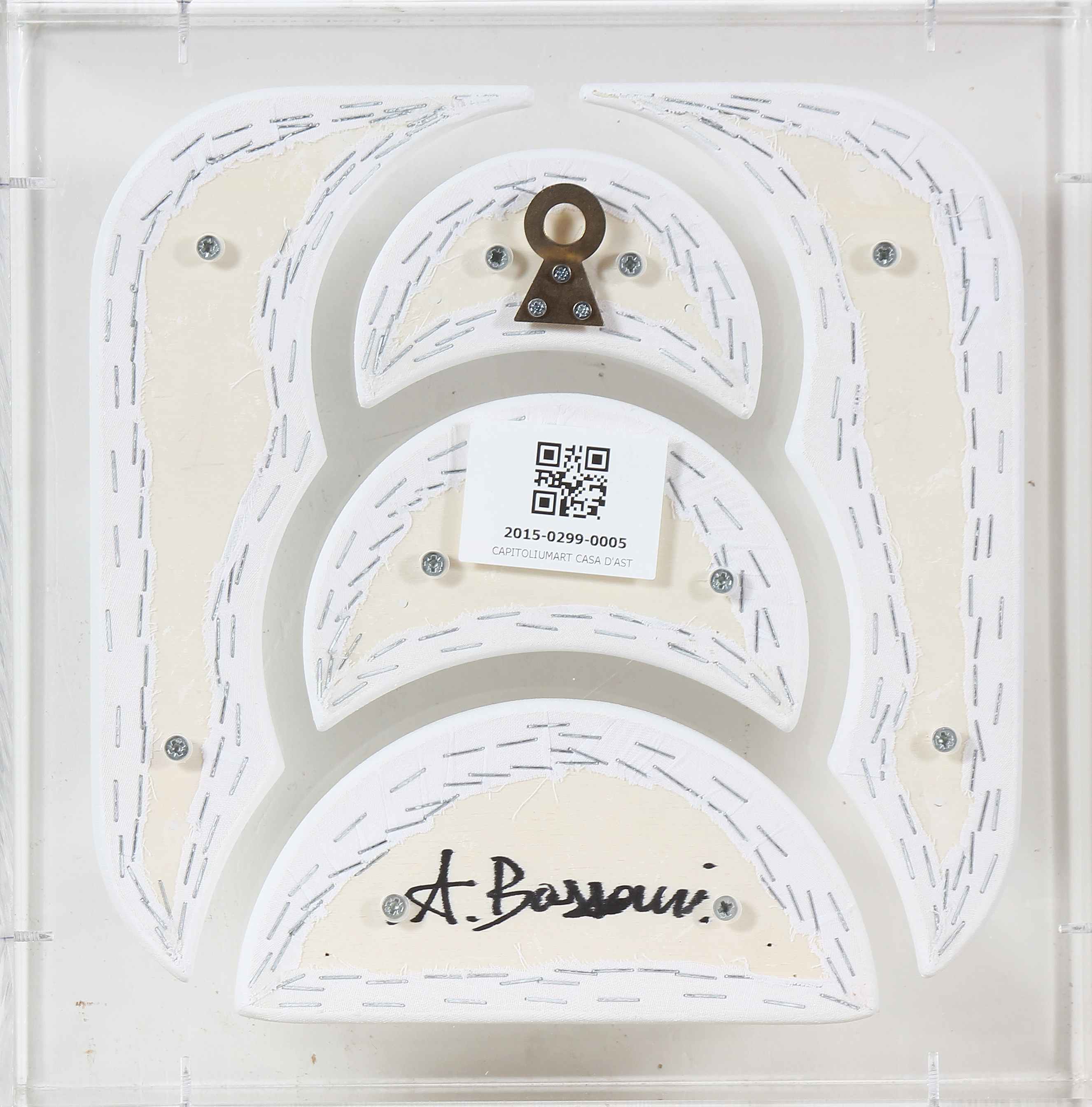 BASSANI ANDREA (n. 1954) Senza titolo. Tela estroflessa. Cm 30,00 x 30,00 x 8,00. Firma sul lato e al retro. Opera contenuta in una tela di plexiglass. Autentica dell'artista su fotografia.