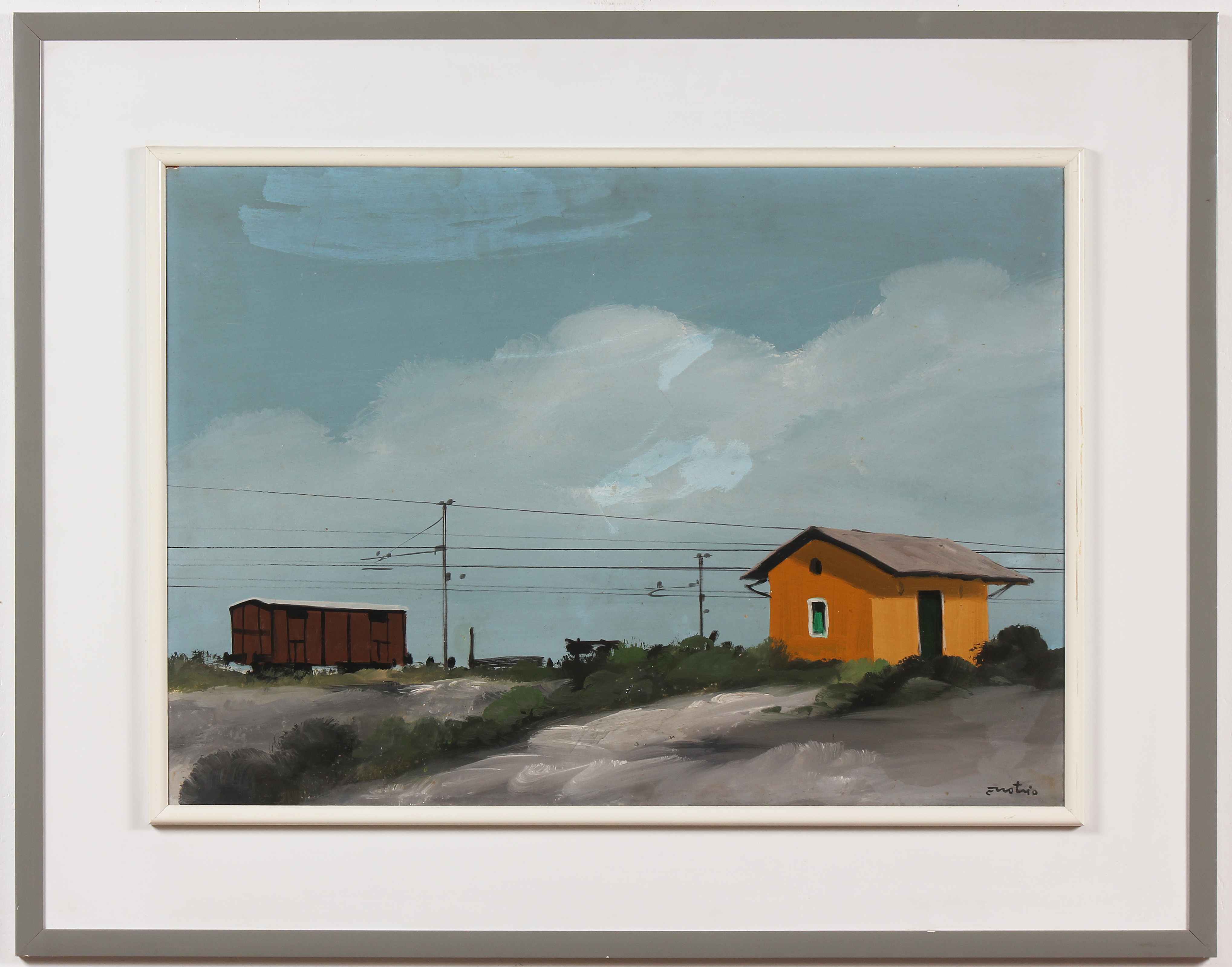 PUGLIESE ENOTRIO (1920 - 1988) Casello Ferroviario. Olio su tela . Cm 70,00 x...
