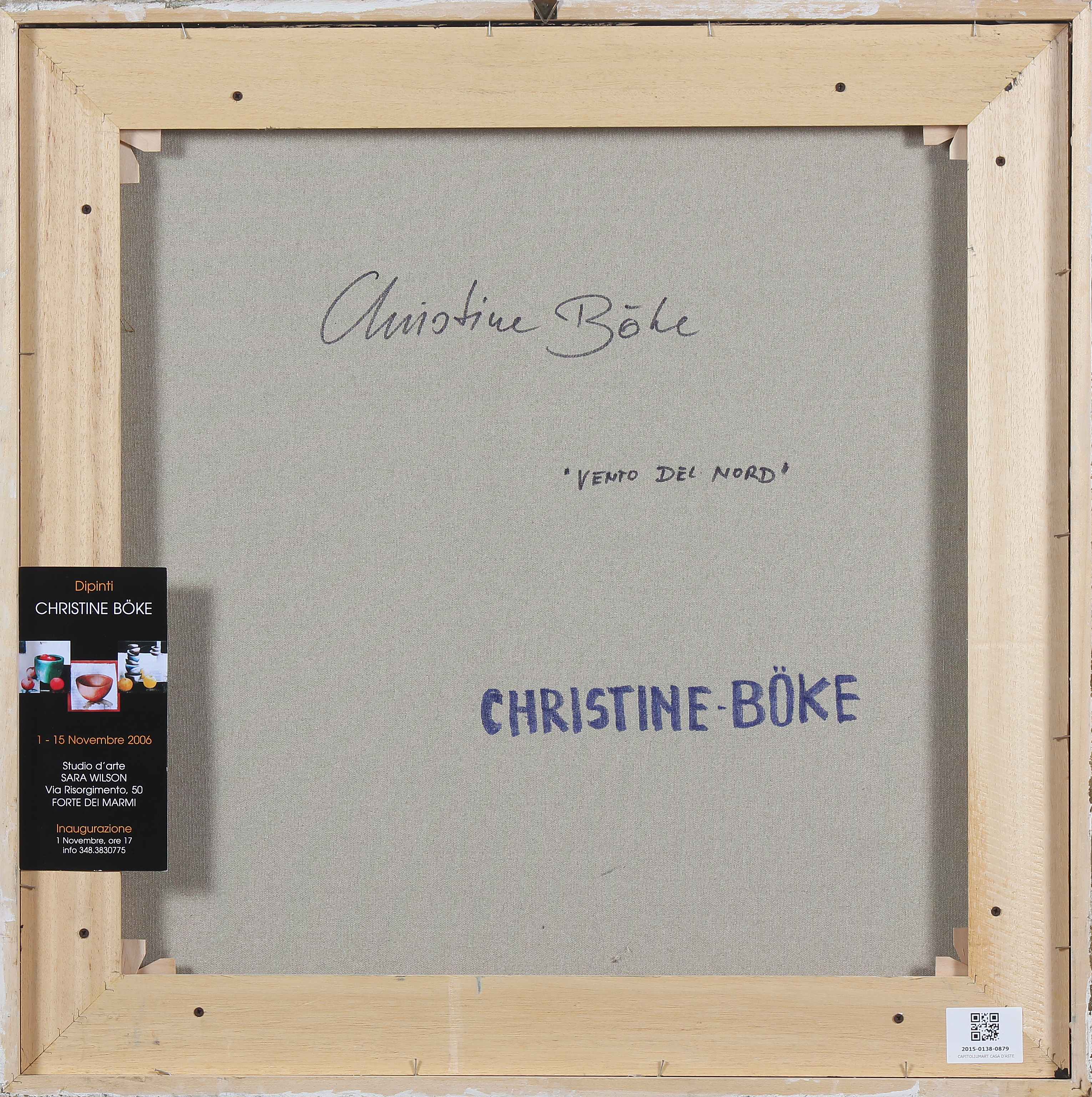 BOKE CHRISTINE (n. 1953) Vento del nord. Olio su tela . Cm 70,00 x 70,00. Al retro titolo, firma e cartiglio della mostra I Dipinti di Christine Boke tenuta dal 1 al 15 Novembre 2006 presso la Studio d'Arte Sara Wilson, Forte dei Marmi.