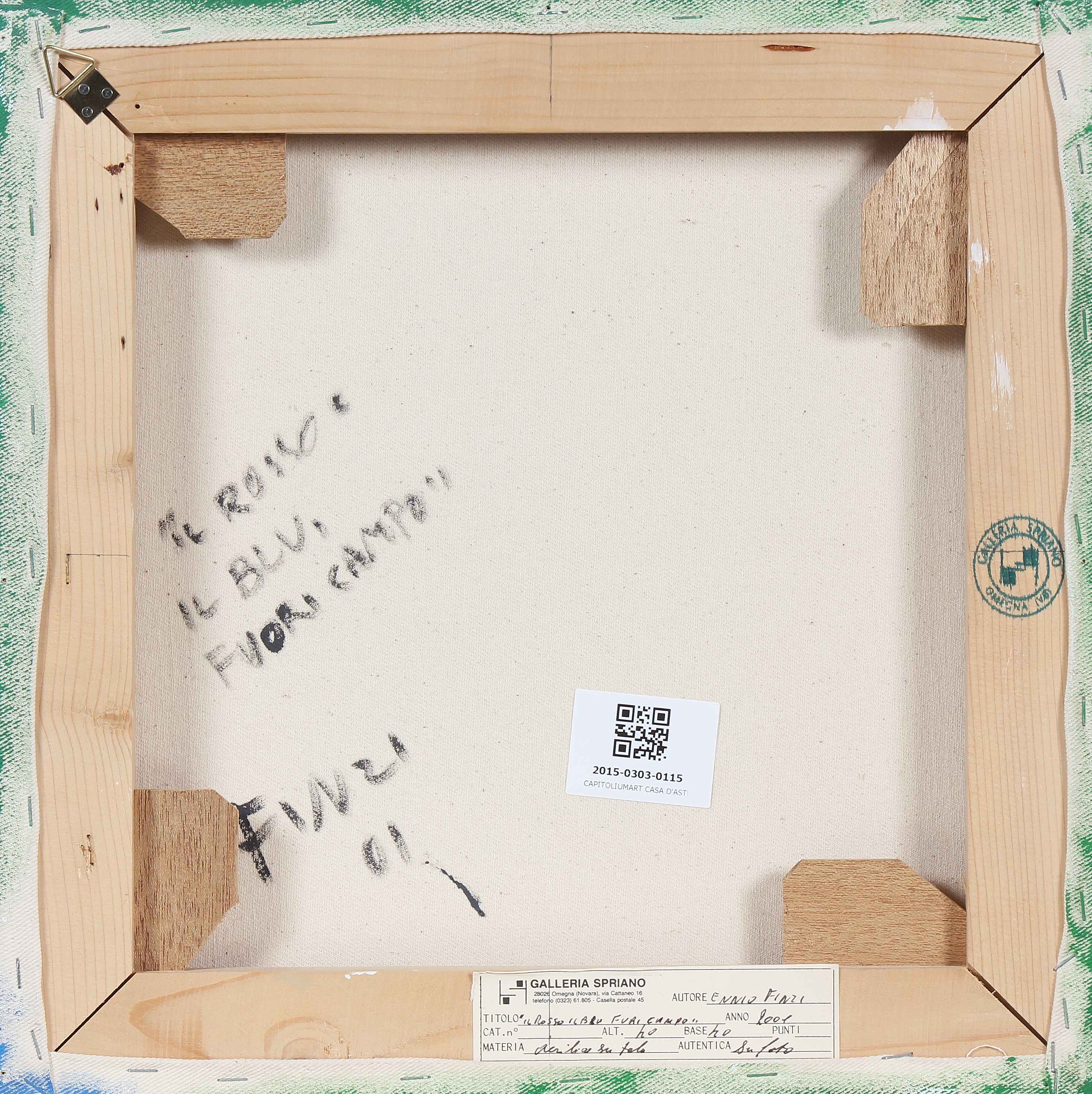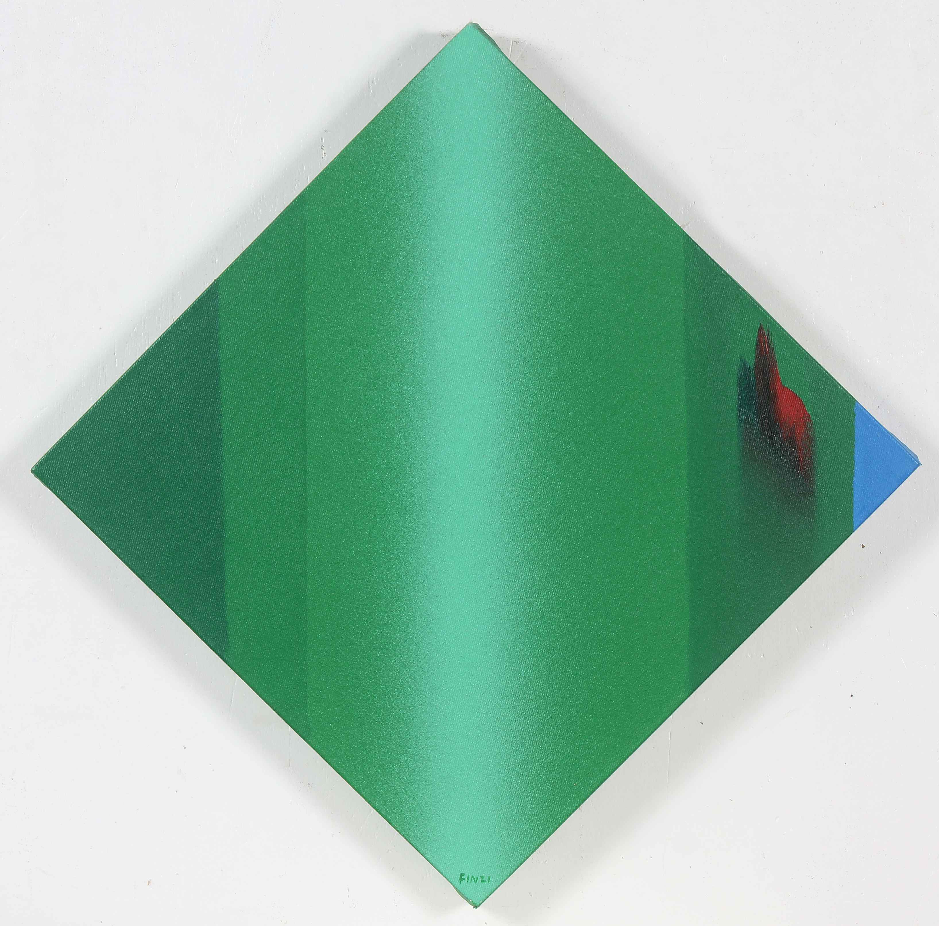 FINZI ENNIO (n. 1931) Il rosso e il blu fuoricampo. 2001. Acrilico su tela. Cm 40,00 x 40,00. Firma in basso a sinistra. Al retro titolo, firma e anno. Cartiglio descrittivo e timbro a cura della Galleria Spriano Omegna (Novara).