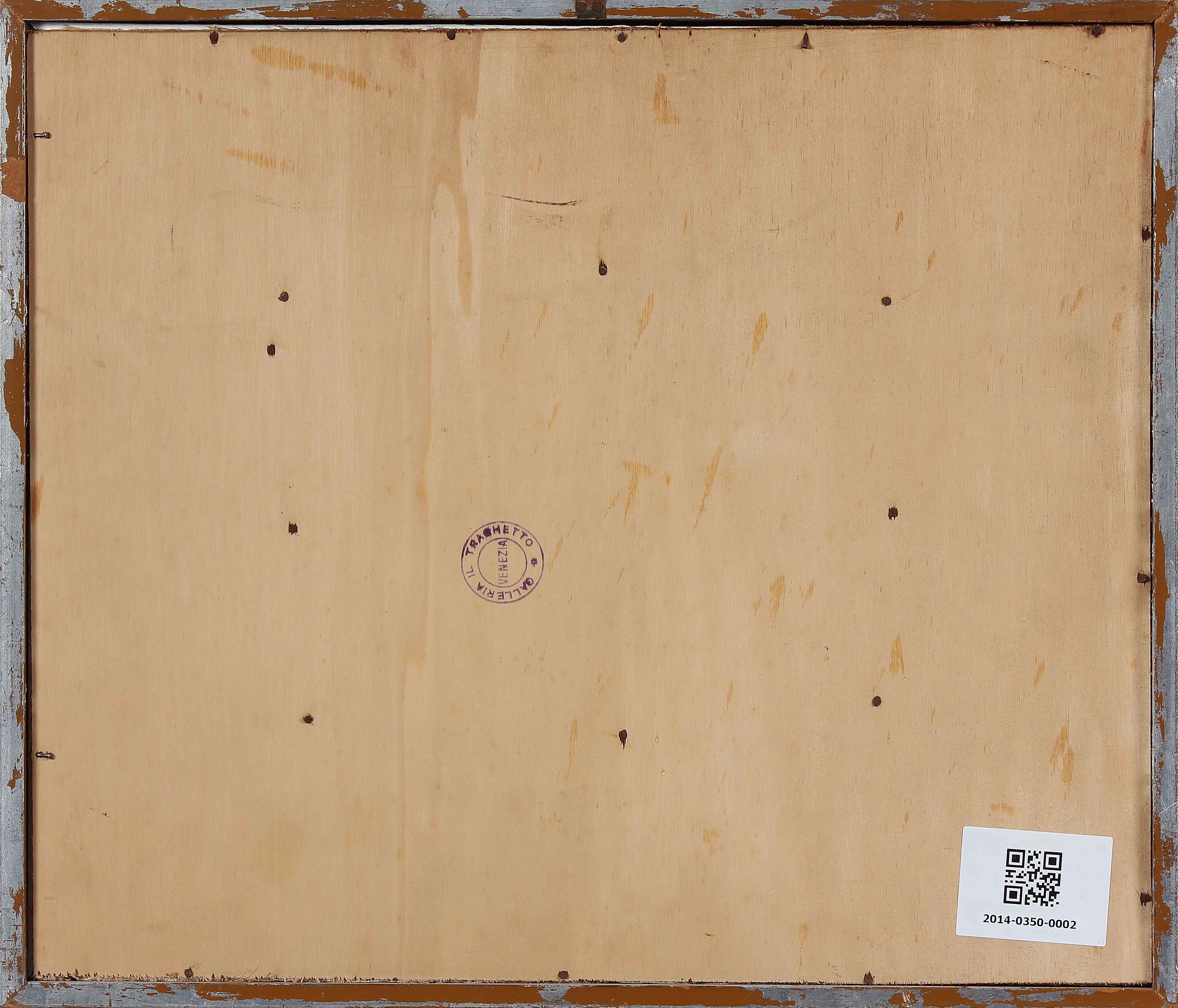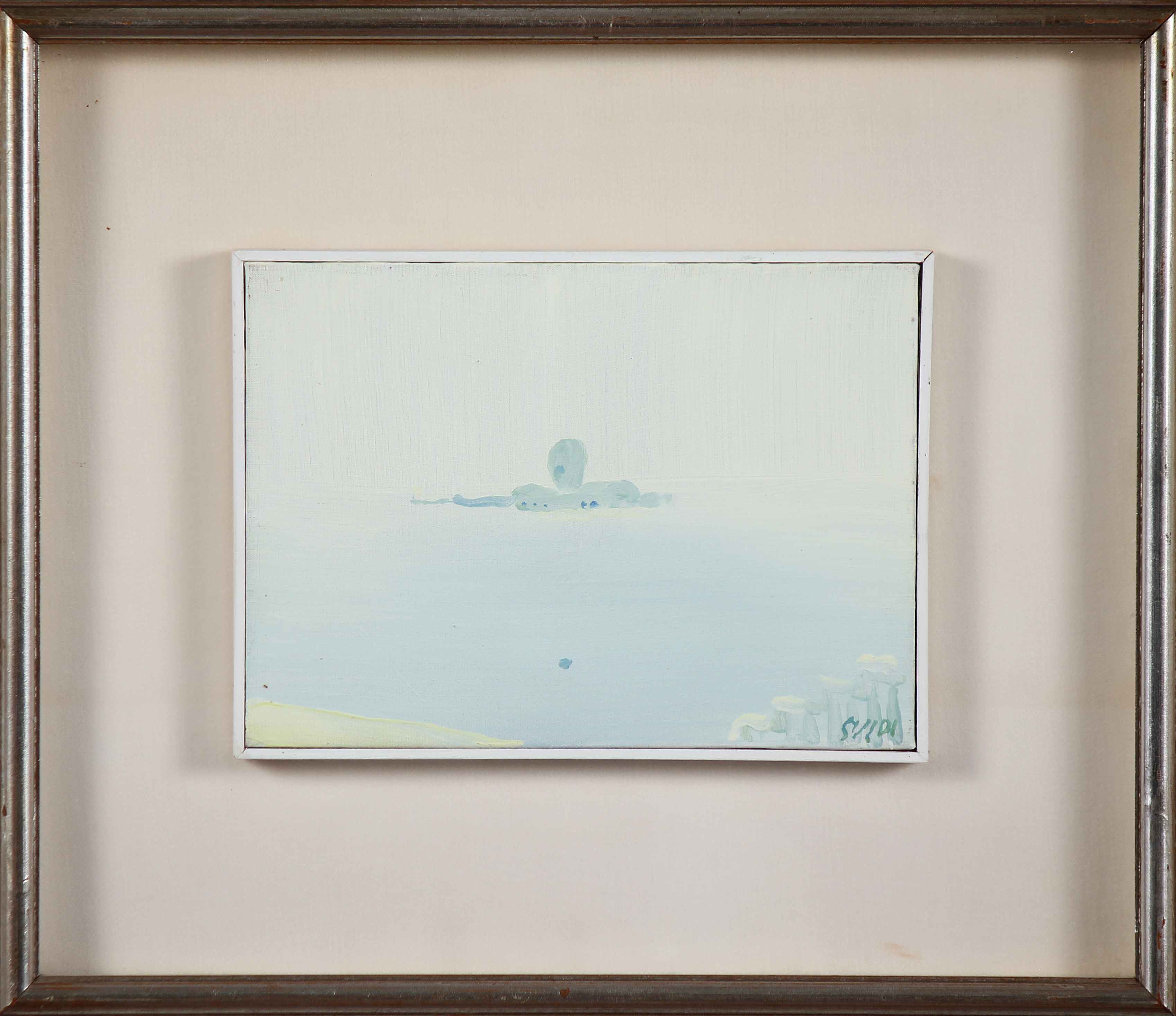 GUIDI VIRGILIO (1891 - 1994) Isola di San Giorgio. Olio su tela . Cm 27,00 x 14,00. Firmato in basso a destra. Al retro timbro galleria Il Traghetto, Venezia. Cornice presente