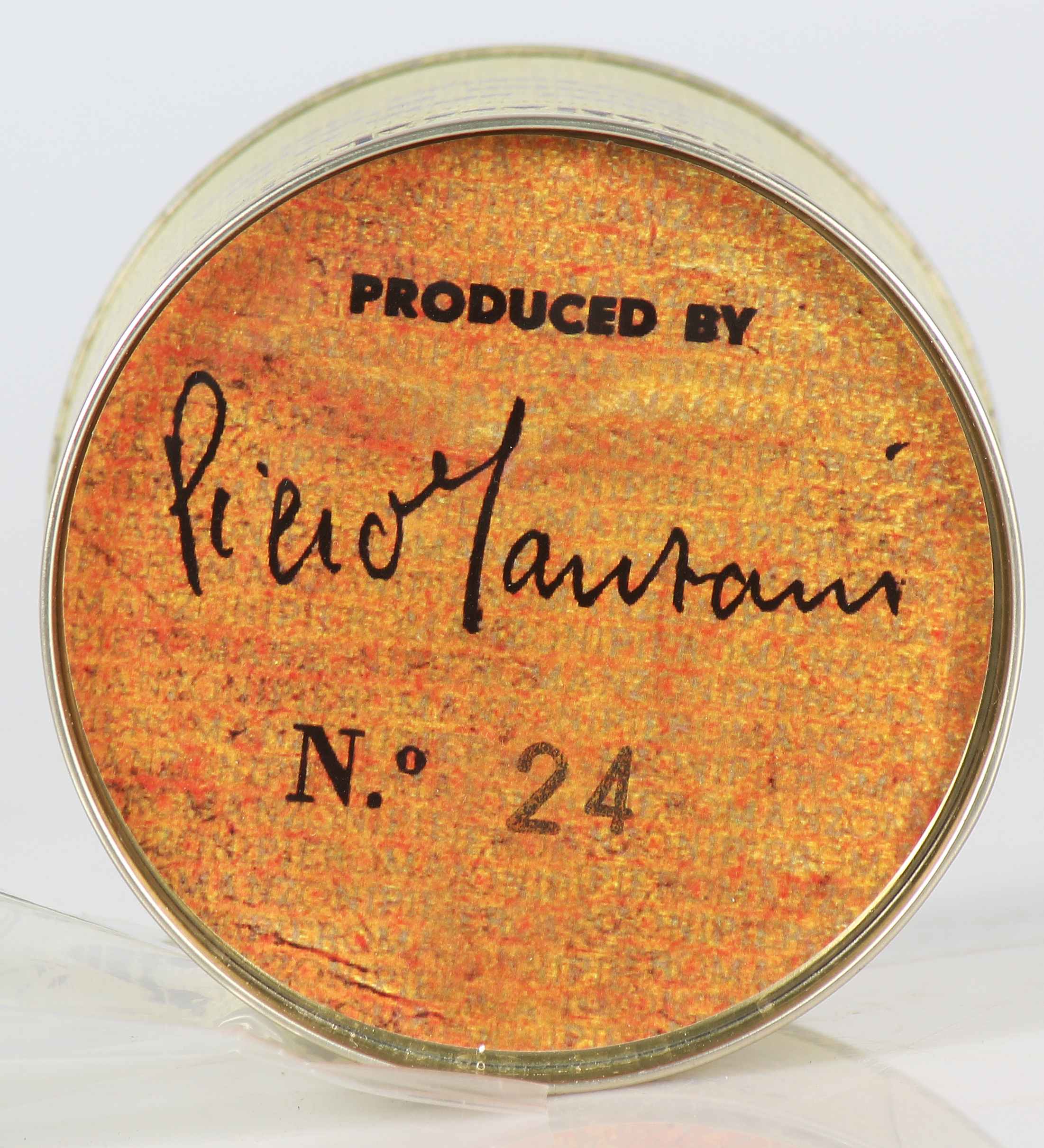 MANZONI PIERO (1963 - 2013) Merda d'artista. Multiplo. Cm 7,50 x 6,00. Firma a stampa. Edizione n. 24. Merda d'artista dell' anniversario 2013. Prodotta e inscatolata da: Fondazione Piero Manzoni, Milano.