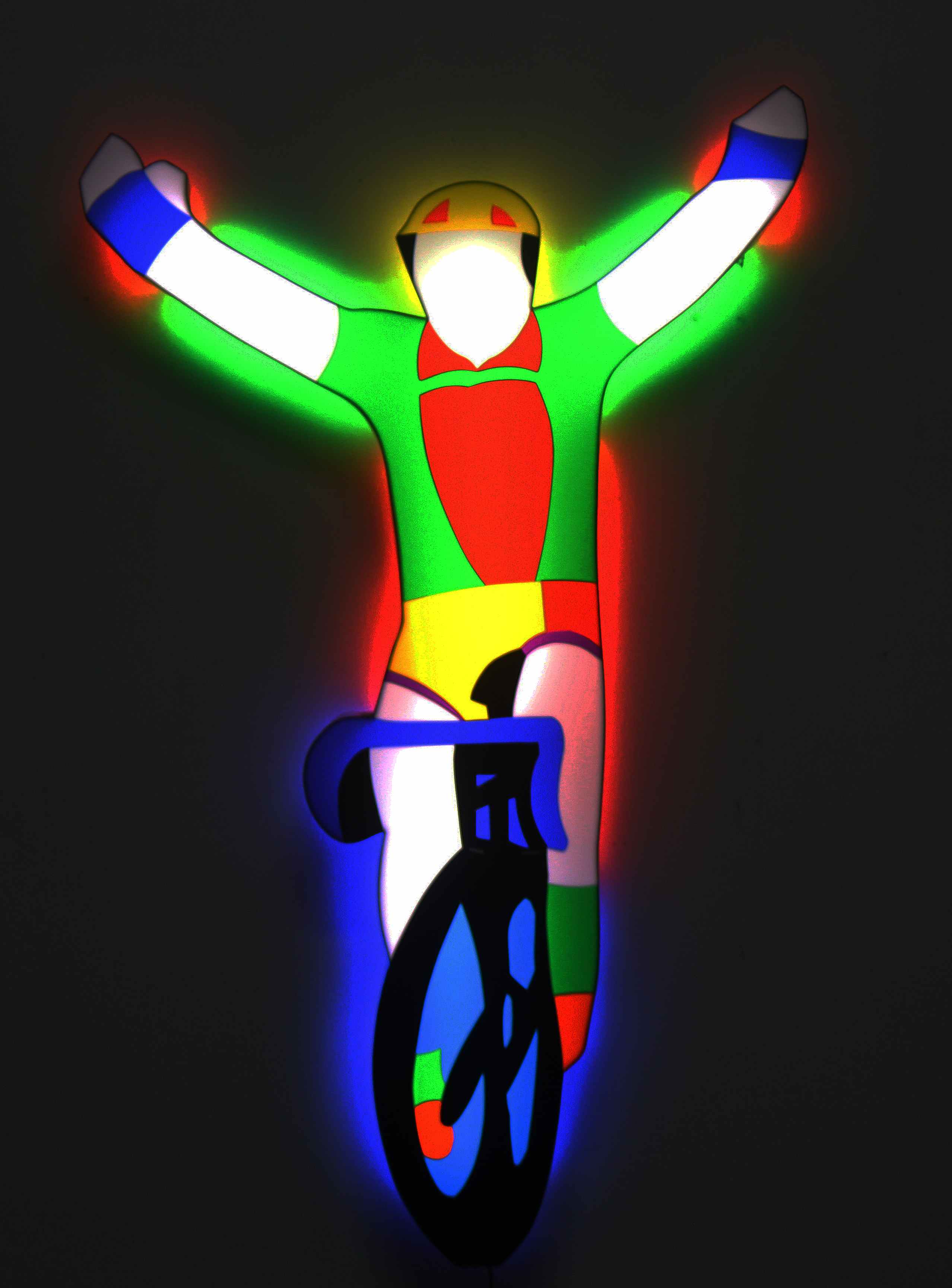 LODOLA MARCO (n. 1955) Maglia rosa. 2011. Neon perspex e smalti. Cm 80,00 x 122,00 x 12,00. Al retro firma, titolo e anno. Autentica dell'artista su fotografia.