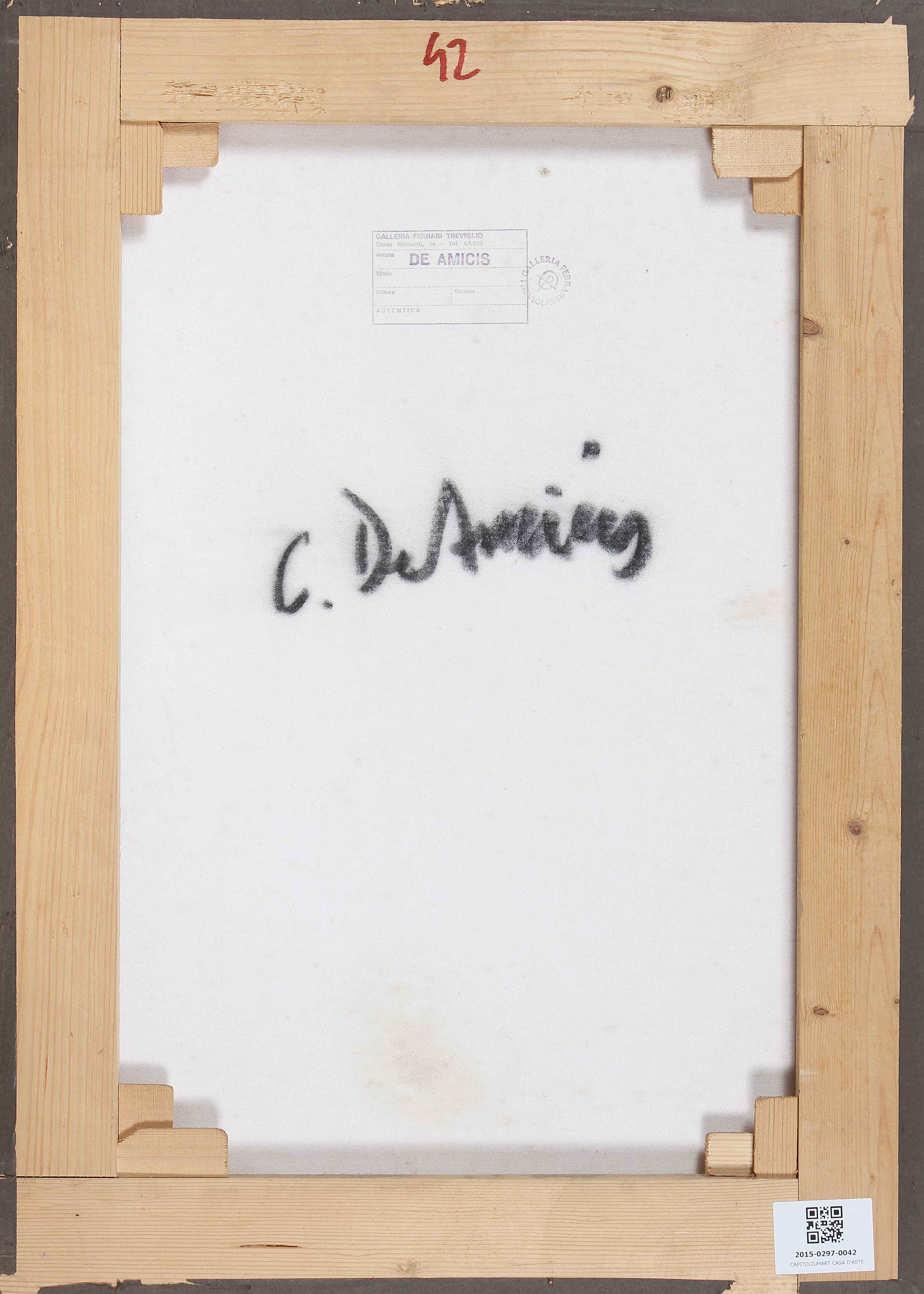 DE AMICIS CRISTOFORO (1902 - 1987) Figura femminile. 1978. Tecnica mista su carta su tela. Cm 50,00 x 70,00. Firma e anno in basso a destra. Al retro firma e timbro a cura della Galleria Ferrari, Treviglio. PROVENIENZA: EREDITA' MARCELLO FERRARI, GALLERIA FERRARI, TREVIGLIO.