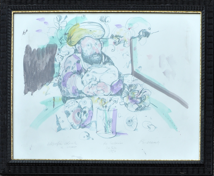 ANTONIO POSSENTI Senza titolo, 1983 Litografia colorata a mano cm. 50x72 Firma e data in basso