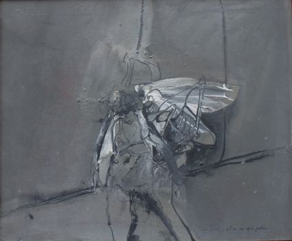 Sergio Saroni Torino 1935 Figura con cavalletta 1964 Tecnica mista su tela...