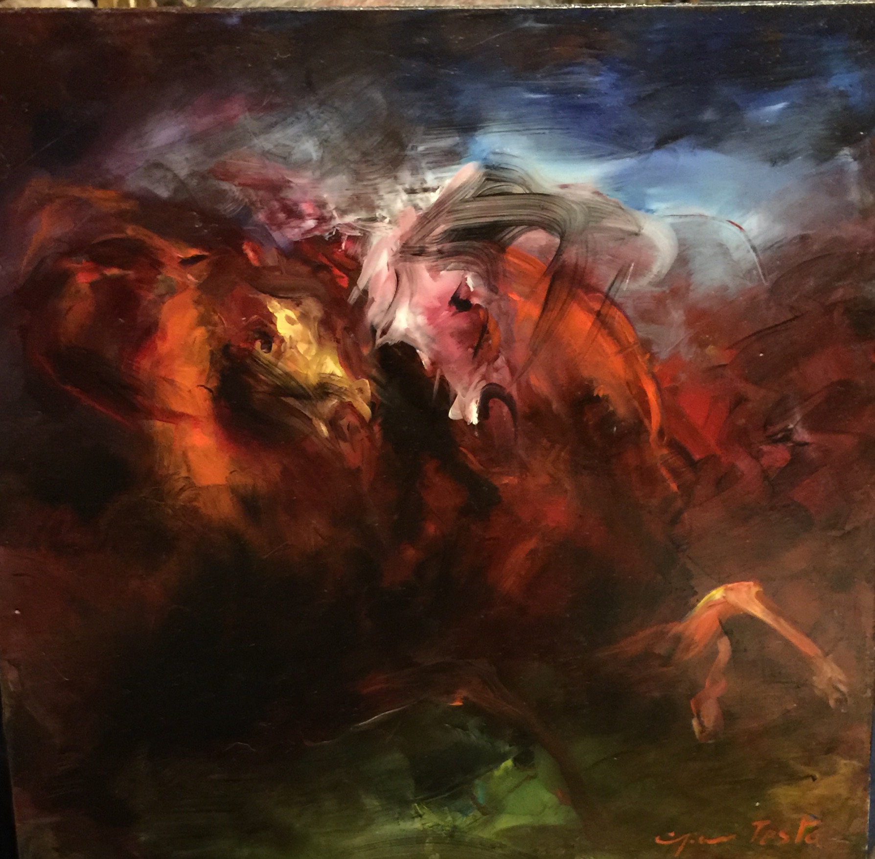 Gianni Testa Roma 1936 Bradi innamorati 2014 olio su tela 30x30 Certificato...