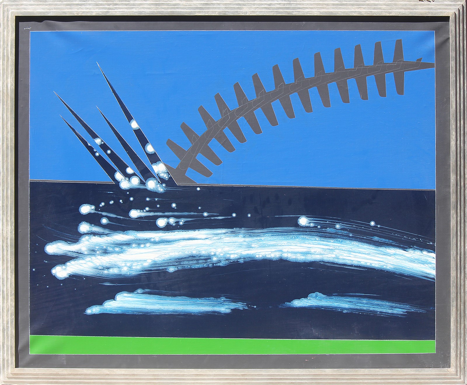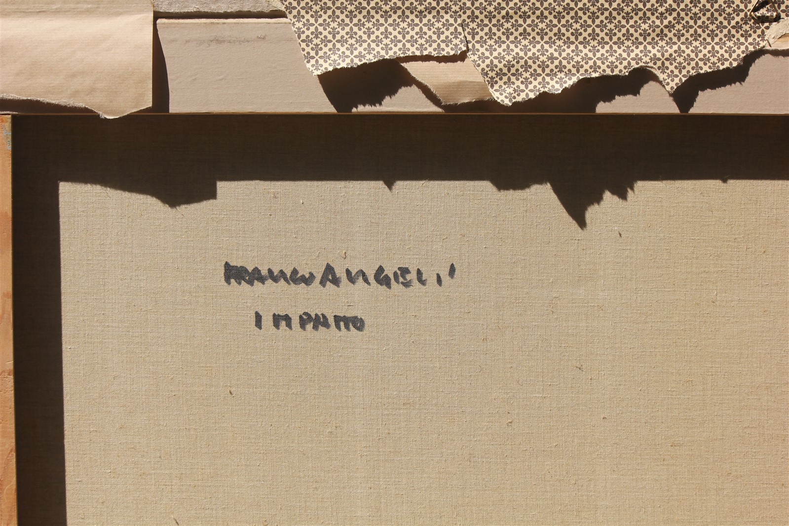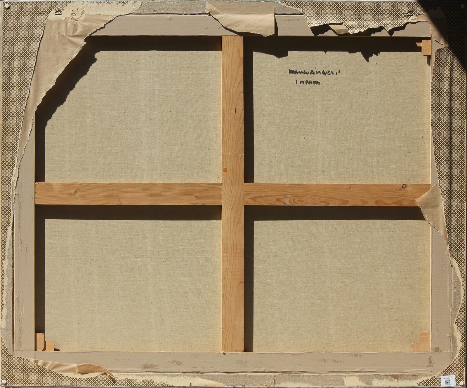 ANGELI FRANCO (1935 - 1988) Impatto. Tecnica mista su tela. Cm 150,00 x 130,00. Al retro firma e titolo. Opera in corso di archivazione presso l'Archivio Franco Angeli, Roma. Cornice presente