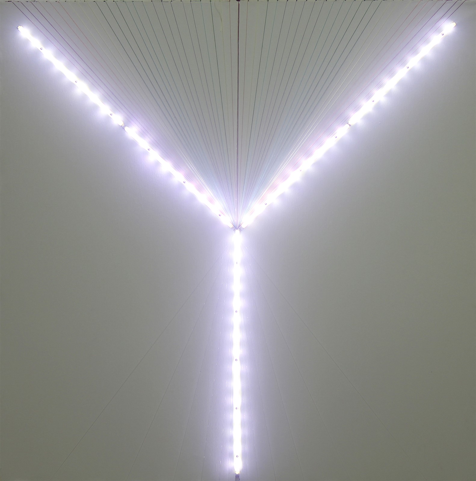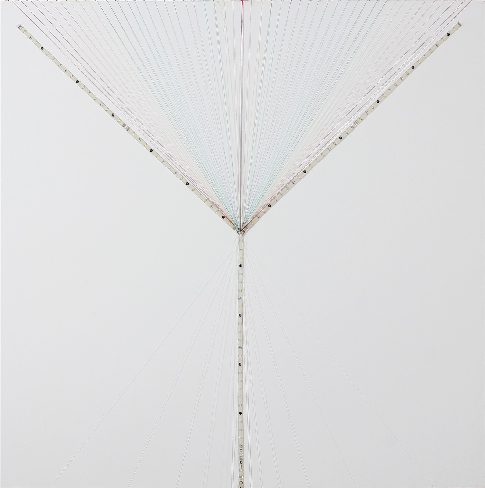 ZANUSO GIORGIA (XX - XXI SEC.) Rifrazione. 2014. Tecnica mista su tela. Cm 100,00 x 100,00. Al retro titolo, firma e anno.