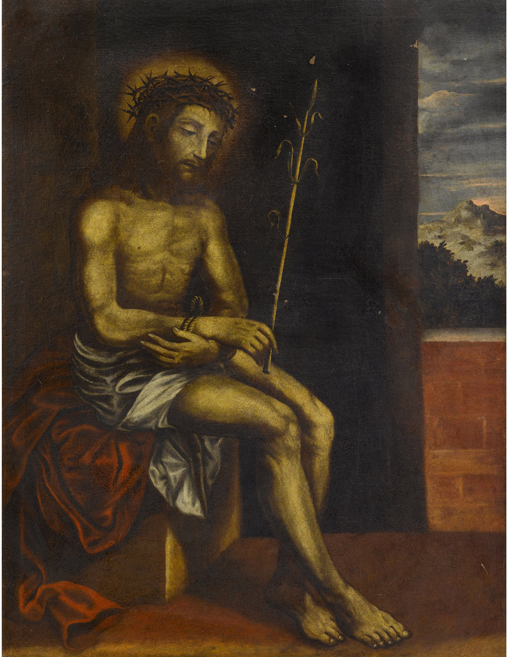 Scuola italiana (XVI secolo) Ecce homo Olio su tela Misura 120x92 cm