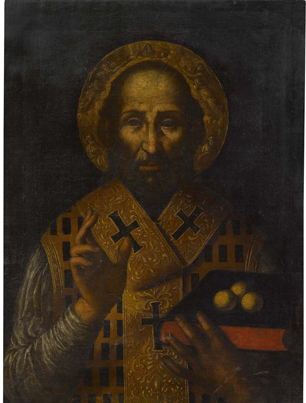 Scuola meridionale (XVII secolo) San Nicola di Bari Olio su tela Misure 60x53 cm