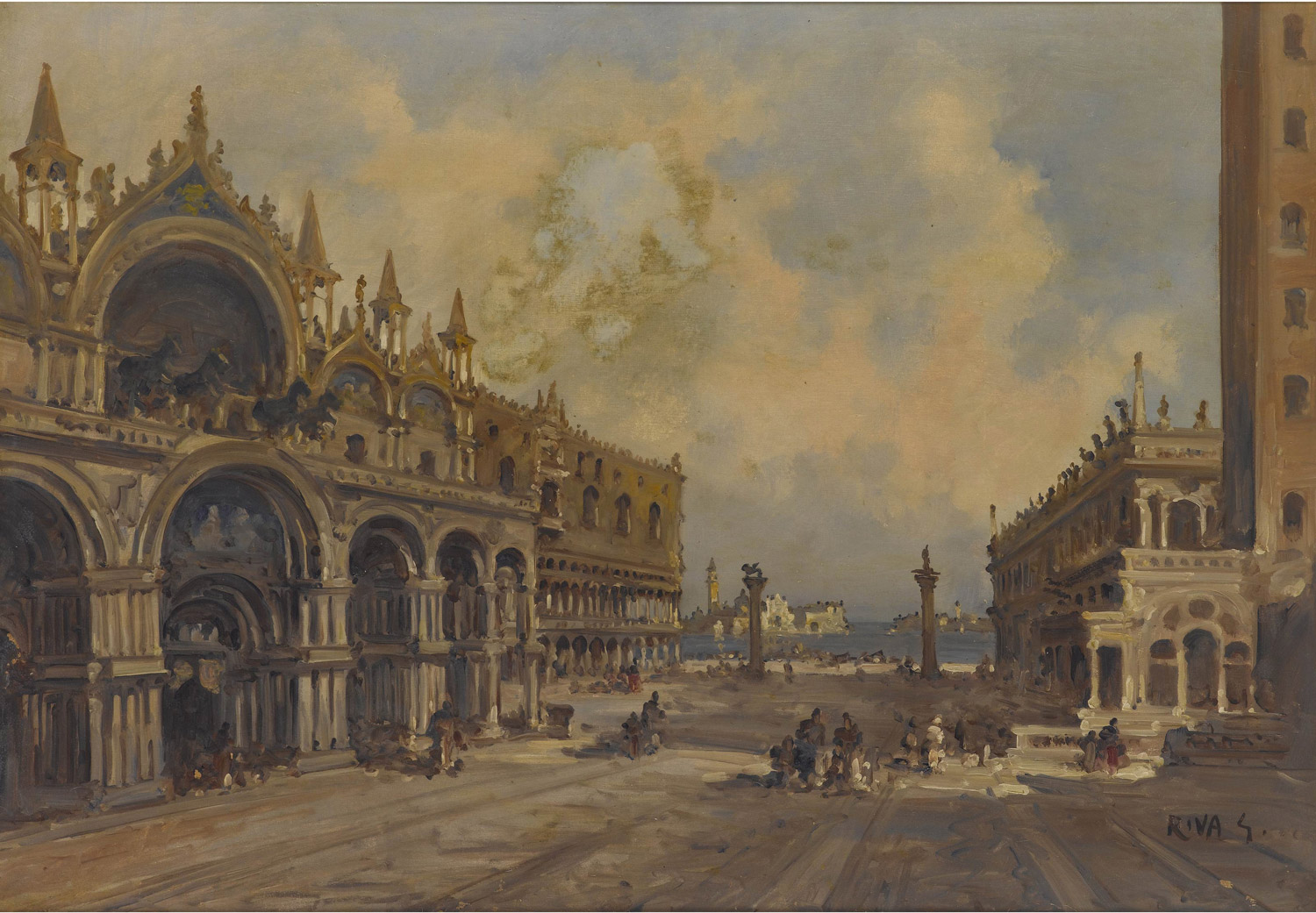Giuseppe Riva (1834-1916) Piazza San Marco (Venezia) Olio su tela Firmato Misura 70x100 cm
