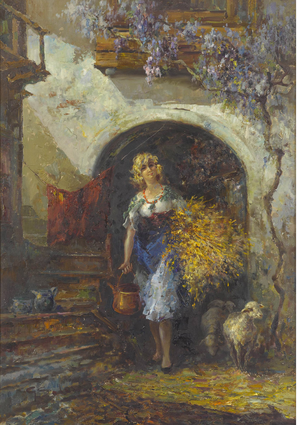 Giuseppe Solenghi (Milano 1879-Cernobbio 1944) Contadina con mazzo di fiori...