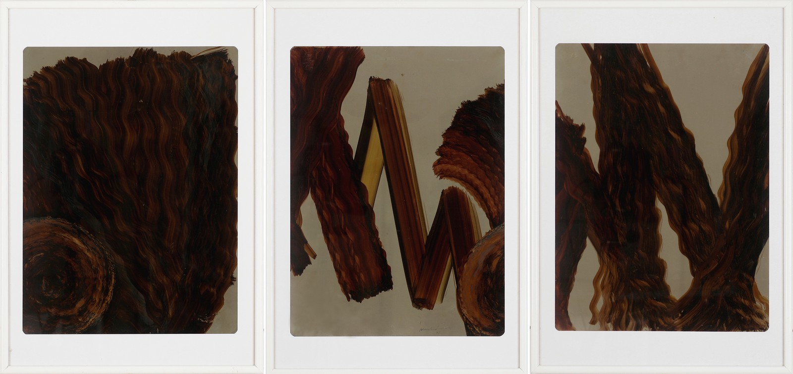 Pezzo unico composto da tre opere in sequenza incorniciate separatamente. Firma e data in basso a destra. Autenti dell'artista e timbro della Agenzia d'Arte Contemporanea Gianfranco Rosin, Riccione, su fotografia. Cornice presente.