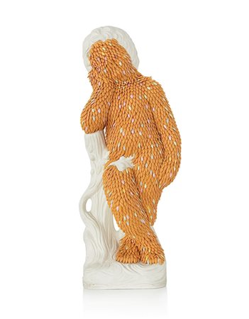 scultura in materiale plastico e unghie colorate cm. 84x34x24, firma e anno sotto la base, dichiarazione d'autenticità dell'artista su foto.