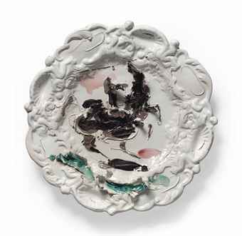 LUCIO FONTANA (1899-1968) Cavaliere firmata e datata l. fontana 53 (sul retro) ceramica colorata cm 50x50x10 Realizzata nel 1953 Opera registrata presso la Fondazione Lucio Fontana, Milano, n. 2131/3, come da autentica su fotografia P R O V E N I E N Z A : O. Borsani, Milano Ivi acquisita dalla famiglia dell’attuale proprietario nel 1954