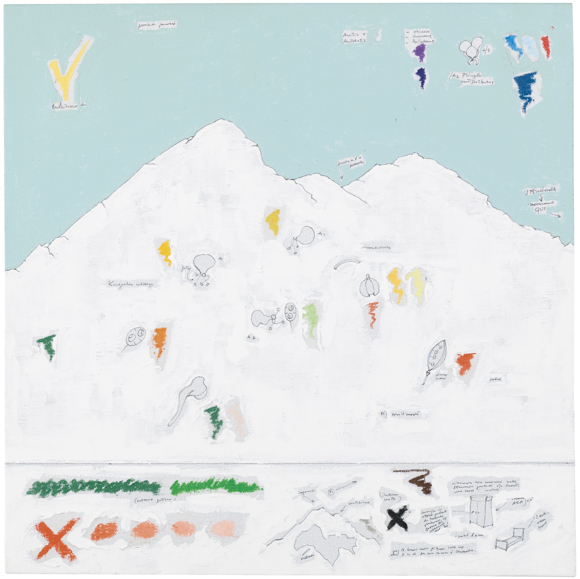 Gianfranco Baruchello N. 1924 MONT SAINTE MARGUERITE SIGNED, TITLED AND DATED 1985 ON THE STRETCHER, OIL ON CANVAS firmato, intitolato e datato 1985 sul telaio olio e inchiostro su tela cm 50x50
