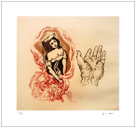 GIORGIO DE CHIRICO Volos (Grecia) 1888 – Roma 1978 Composizione romantica 1972 Incisione a vernice molle e acquatinta a 3 colori es.70/80. Firma in b. a d. + timbro a secco dell’autore in b. a s. (50 x 70 foglio – 37 x 40 inc.) Tiratura: 80 es. num. arabi + 25 es. num. romani + 12 prove d’Artista. Pubbl.: “Giorgio De Chirico Catalogo dell’opera grafica 1969 – 1977” cat. a cura di Edoardo Brandani, Edizioni Bora, Bologna, p.38, n.25. B.A.: 500