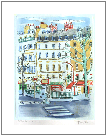 ORFEO TAMBURI Jesi 1910 – Parigi (Francia) 1994 Senza titolo Pittura su acquaforte in nero es.unico. Firma in b. a d., tecnica in b. a s. (51 x 44 foglio – 27 x 20,2 inc.) B.A.: 150