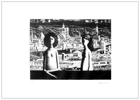 ANTONIO BUENO 1918 - 1984 Senza titolo Incisione es.LXV/C. Firma + timbro a secco Calco Grafica Studio in b. a d. (50 x 70 foglio - 31 x 41 inc.)