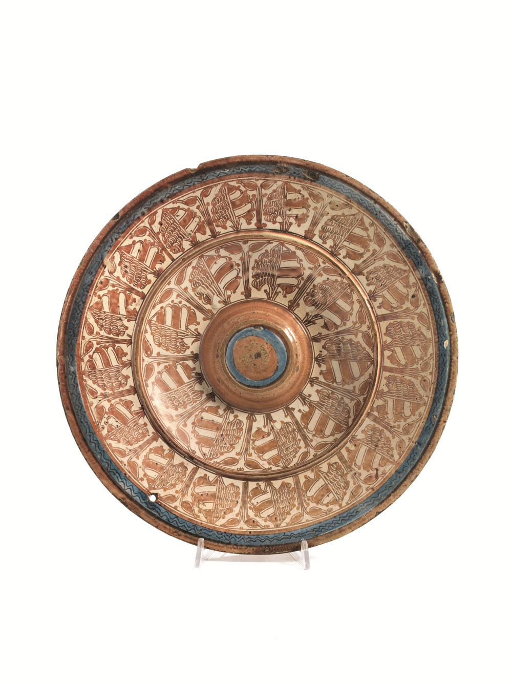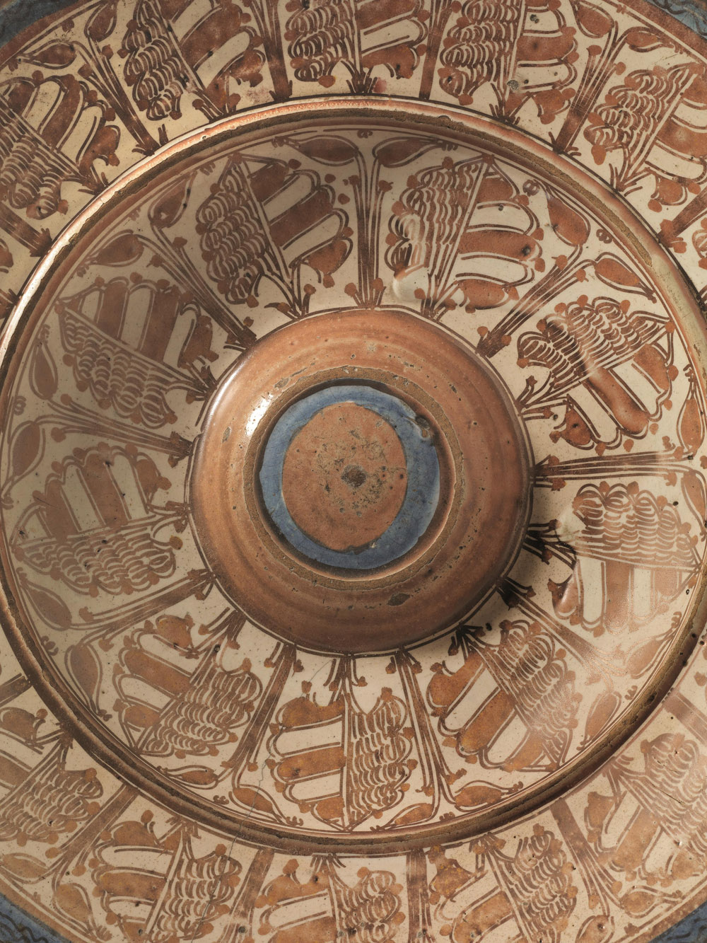 Maiolica decorata in lustro dorato e blu di cobalto.