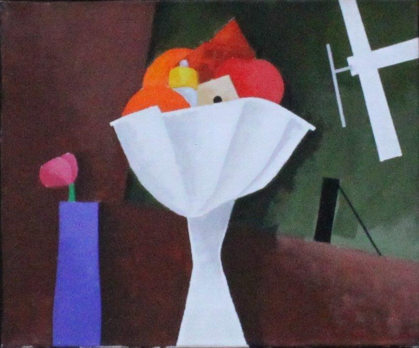 Emilio Tadini MIlano 1927 Finestra 1992 Olio su tela 40x46 Certificato di autenticità