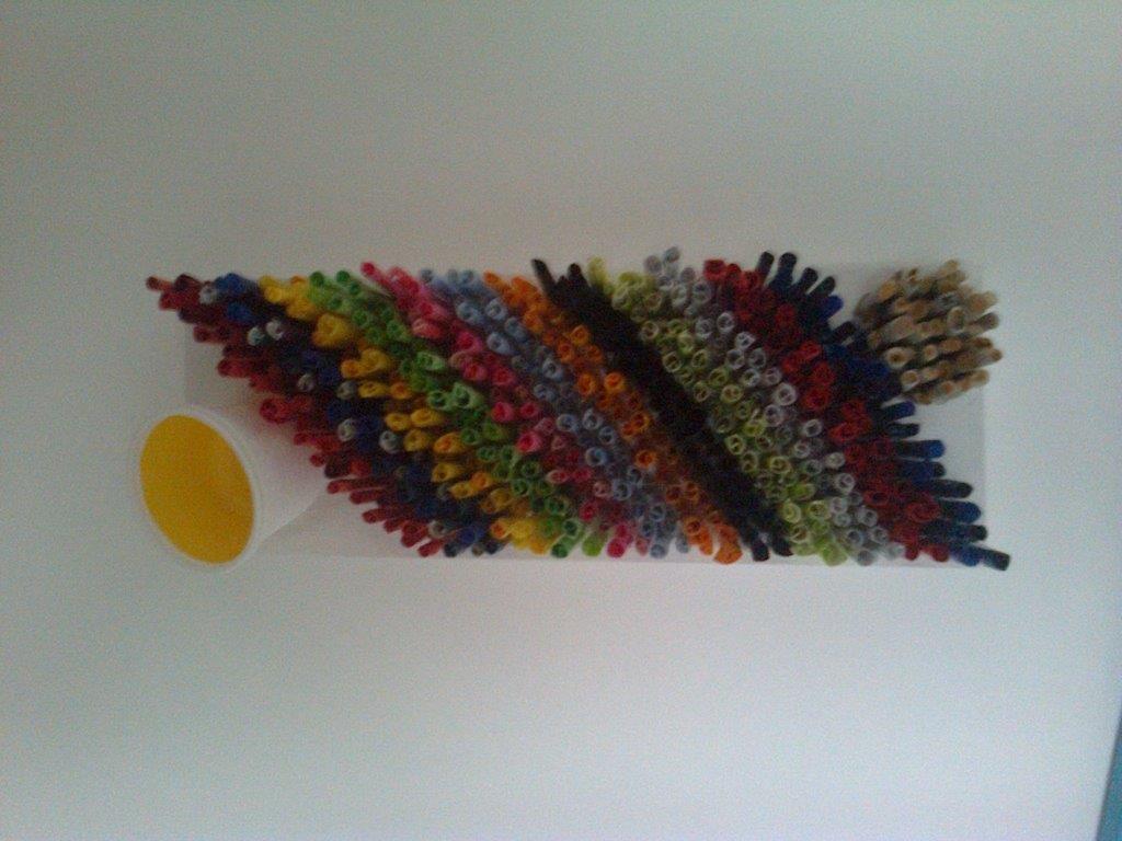 Davide Genna Milano 1983 O senza titolo o 2015 filtri di carta, di sigaretta smalto e plastica su tavola 13x36 Certificato di autenticità