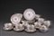 Manifattura inglese servizio da thè in porcellana decorata a fiori e dorature , composto da zuccheriera, lattiera, dieci tazze con piattini e dieci piatti da dolce
