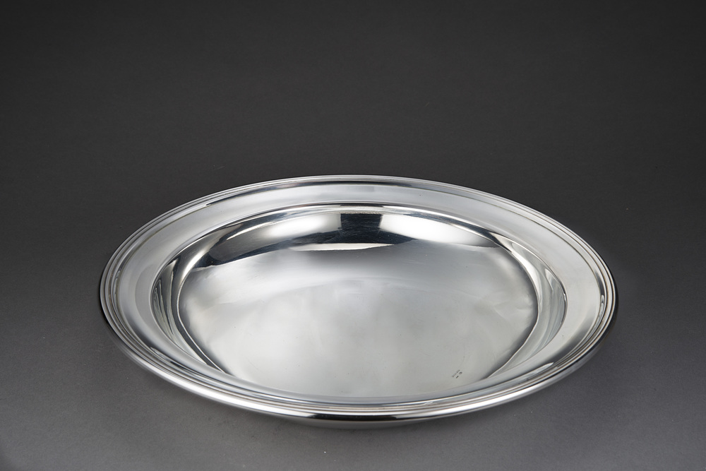 Alzata in argento a corpo liscio, titolo '800 . Argentiere Faraone Milano (gr.630)