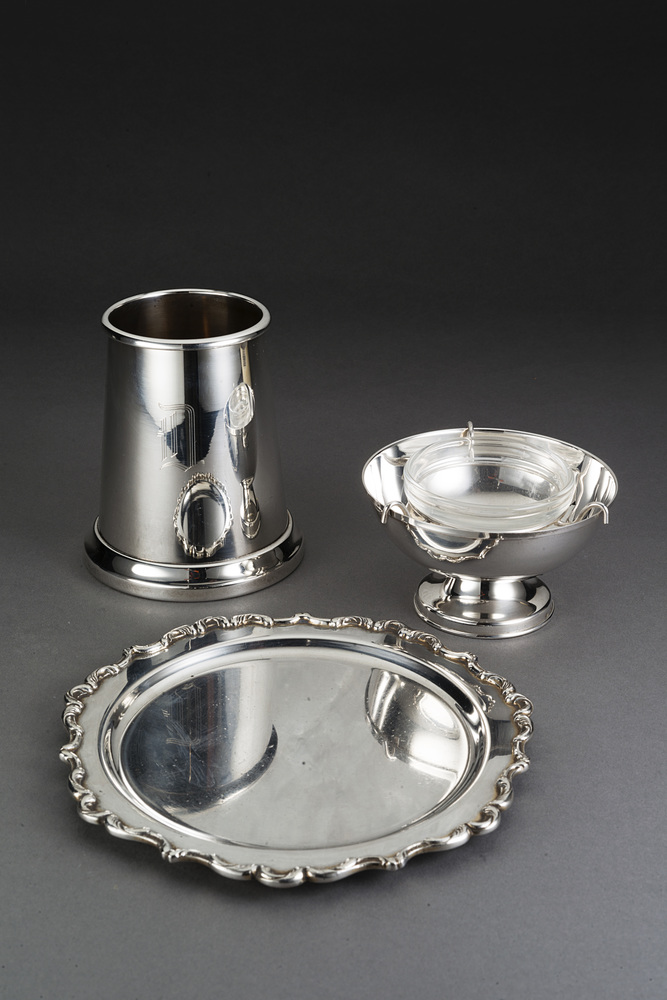 Lotto composto da portacaviale, un piattino e un portapenne in argento (gr 320)