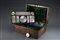 Servizio da toilette da viaggio con scatola in mogano filettato in ottone...