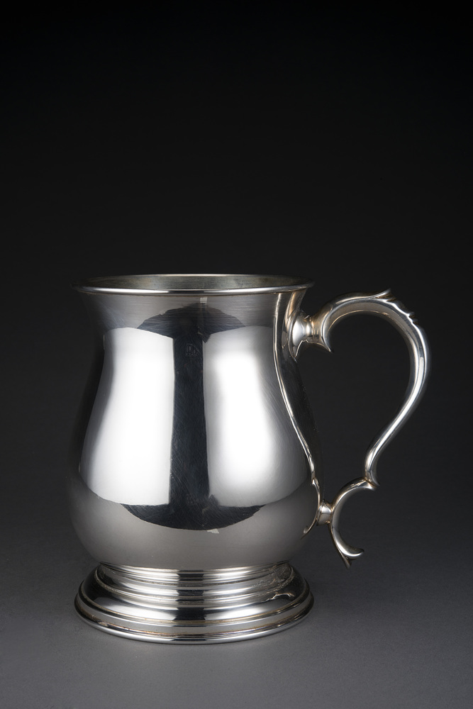 Brocca in argento a corpo liscio con presa sagomata. Titolo 800 (gr. 600)
