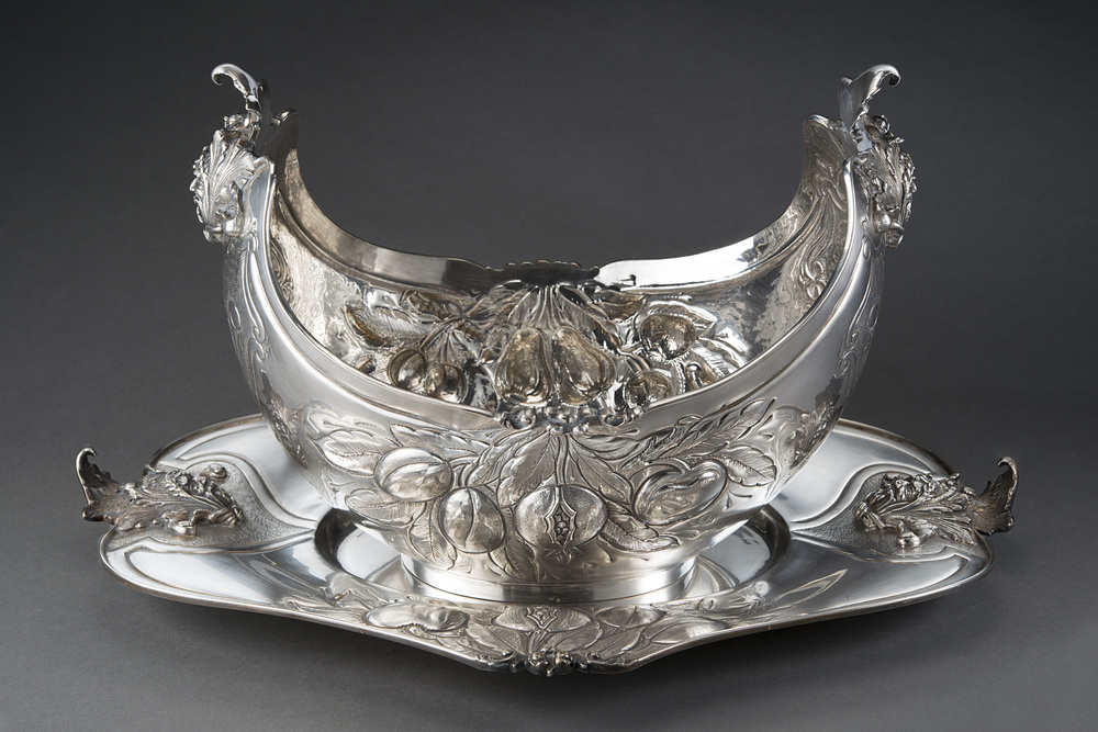 Lot 99 | Grande centrotavola a "barchetta" in argento con vassoio sbalzati e cesellati...