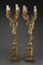 Coppia di candelieri in bronzo dorato a quattro fiamme decorati da figura a...