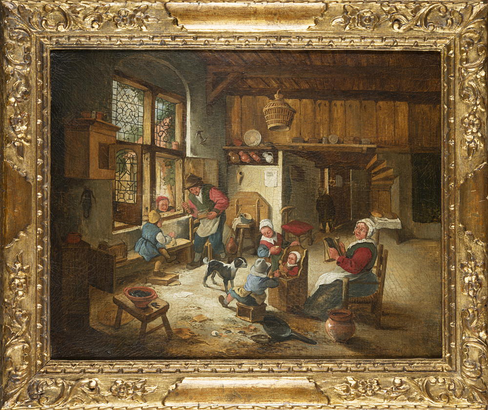 Lot 135 | Lajos Ravaz da Van Osteade "Intero con famiglia" olio su tela (cm 40x50) In...