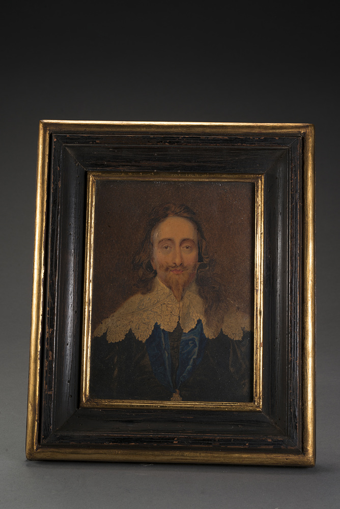 Scuola del sec. XIX "Ritratto di cavaliere con baffi e pizzetto" olio su carta (cm 18x14) In cornice di legno laccata e dorata.