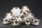 Manifattura Inglese, servizio da caffè in porcellana decorata in policromia a fiori composto da: sei tazze con piattini, teiera, lattiera e sei piatti da dolce