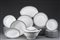 Manifattura di Limoges, parte di servizio di piatti per dodici persone in porcellana decorata a motivi geometrici sul bordo composto da: piatti piani, fondi, piattini, una zuppiera, un insalatiera e due vassoietti