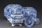Manifattura Inglese, lotto composto da: otto ciotoline, due vassoi ed una zuppiera in ceramica decorate nei toni del blu a scene di caccia.