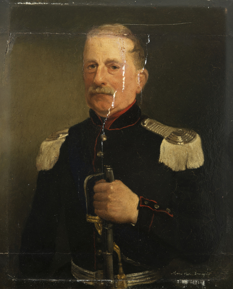 Lot 196 | Firma indecifrata "Ritratto di ufficiale" olio su tavola (cm 26x21) firmato...
