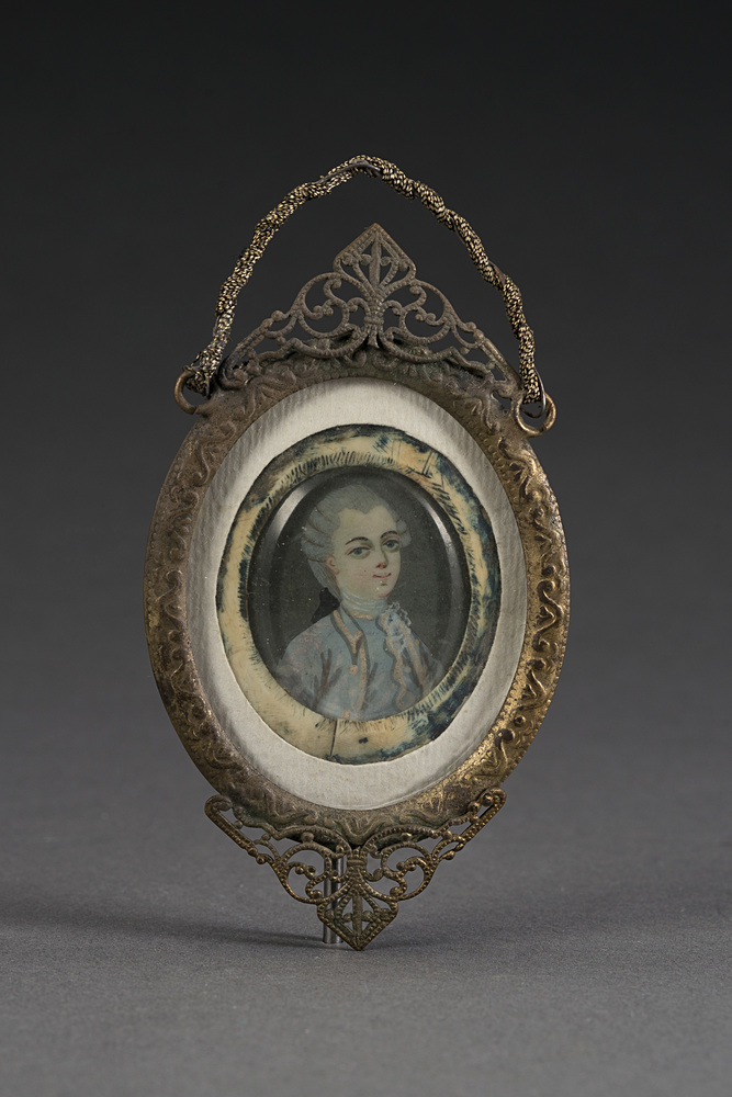 Scuola del sec. XIX "Ritratto di Mozart" miniatura ovale (cm 2x 2,5) in cornice di metallo dorato e traforato