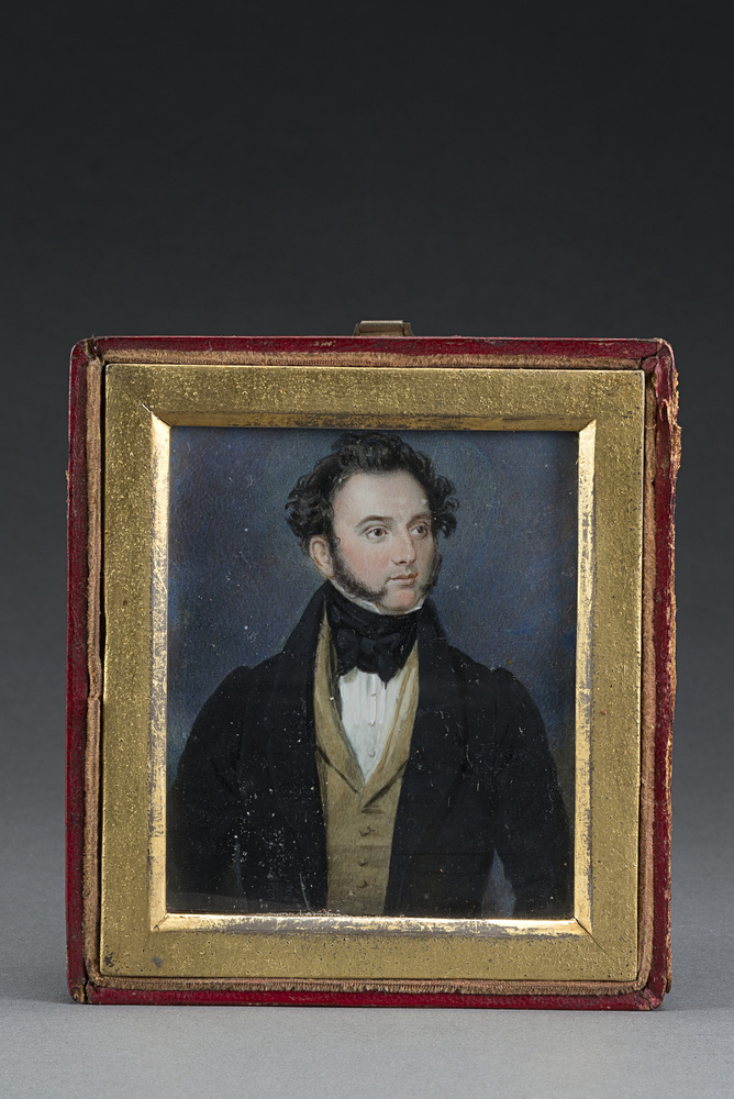 Maestro del sec. XIX "Ritratto di uomo con foulard" miniatura su avorio (cm 10x8) In cornice