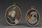 Lotto composto da due miniature di diversa misura raffiguranti gentiluomo e gentildonna in cornici d' argento
