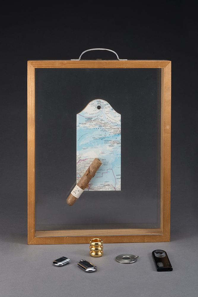Lotto composto da quattro accessori per sigari di fattura moderna ed una targa celebrativa del Club Cigar per Mike