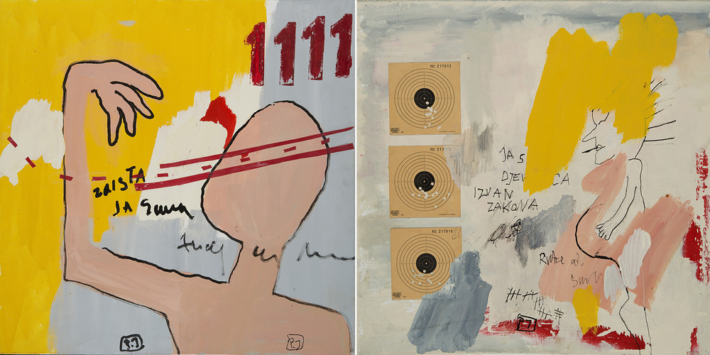 Ignoto "Composizioni" coppia di acrilici su tela (cm 49 x49) In cornici