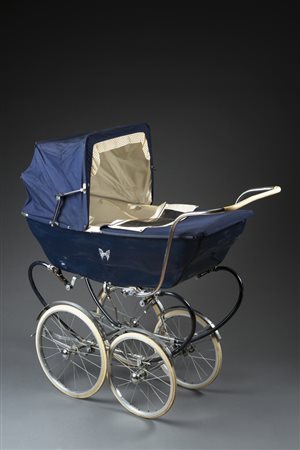 Carrozzina in metallo e stoffa blu ultilizzata per i figli di Mike (difetti)