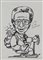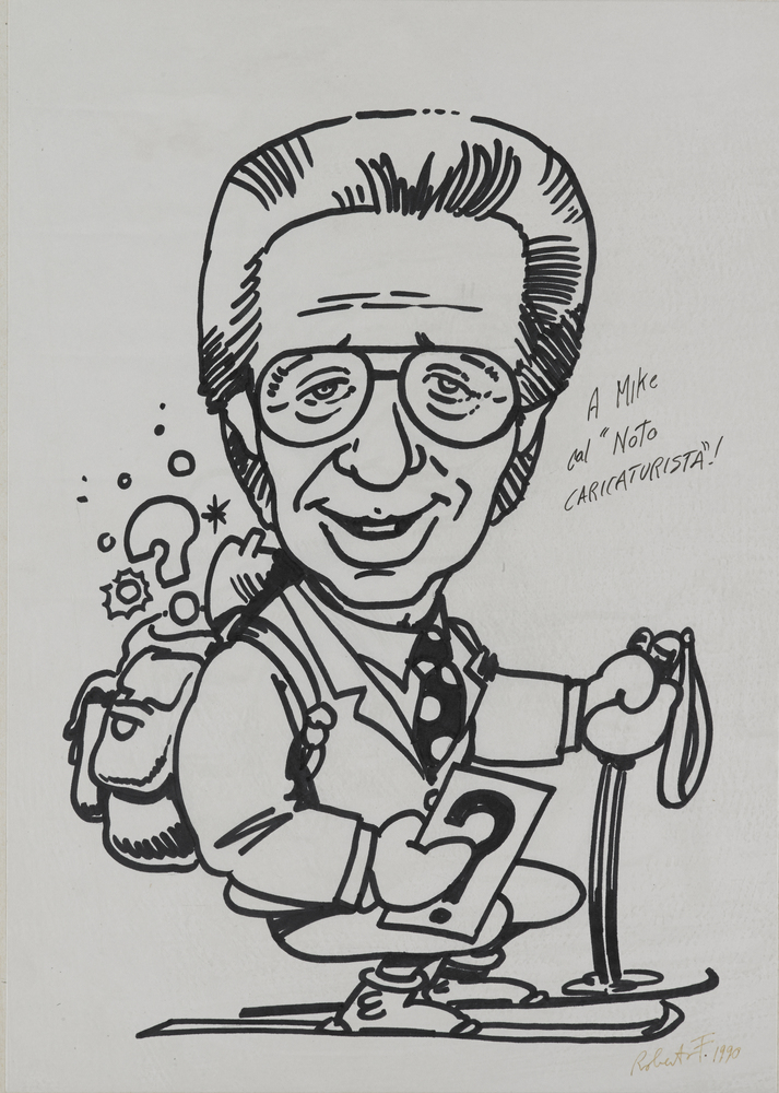 "Mike factotum" caricatura su carta in bianco e nero (cm 41x30) In cornice