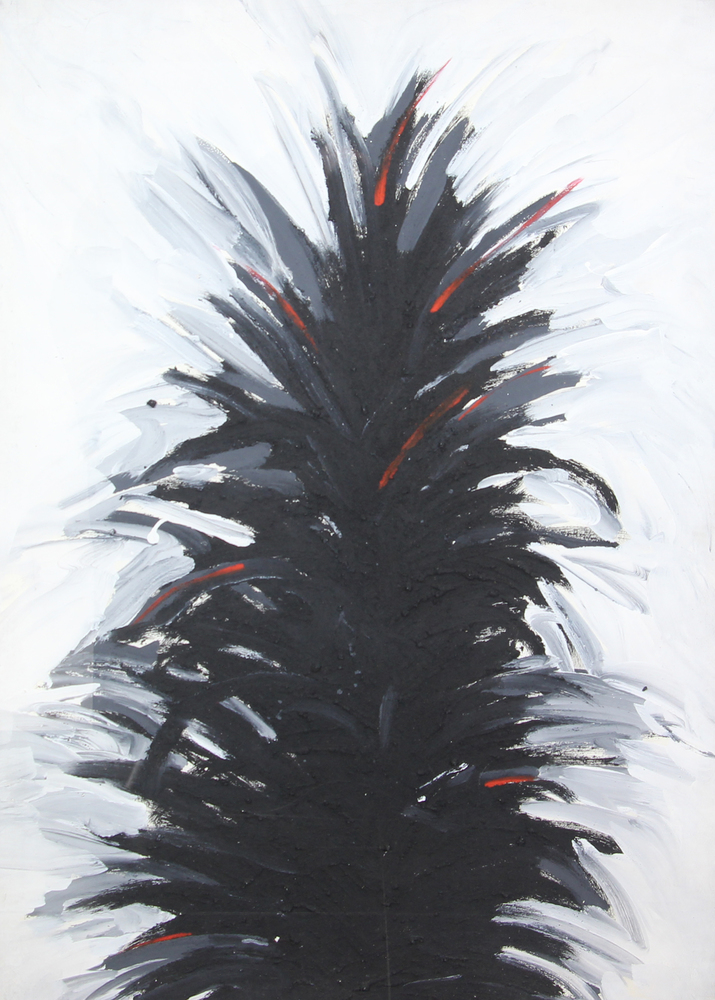 Giuseppe Scaiola, Senza titolo, 1985, olio e sabbia su cartone, cm. 100x70,5, firmato, intitolato, dedicato e datato al retro